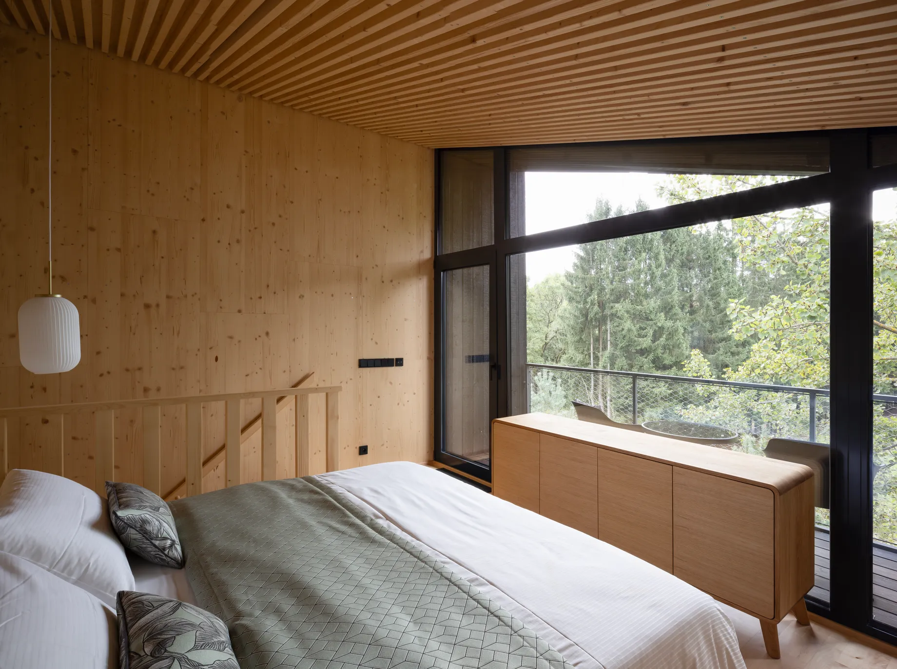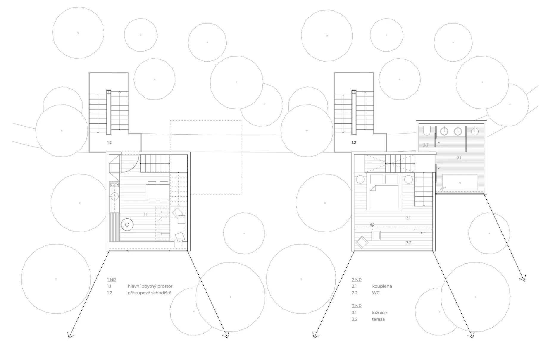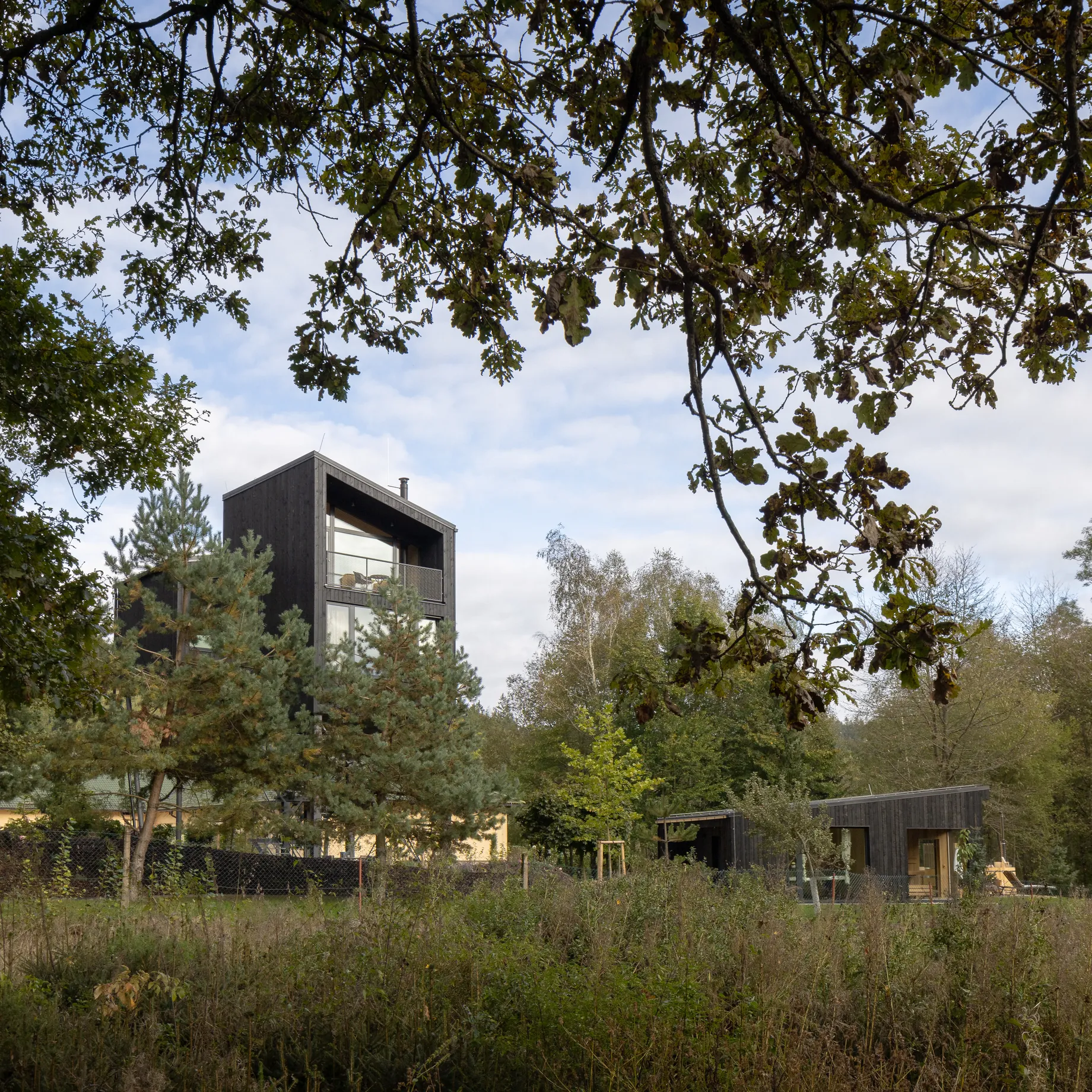 Na pomezí Vysočiny a Jihočeského kraje jsme navrhli zážitkové ubytování jako součást rozšíření hotelového resortu. Projekt zahrnuje dvě dvoupatrové dřevostavby umístěné v korunách stromů a wellness objekt zaměřený na relaxační procedury, který vytváří atmosféru klidu a regenerace.
