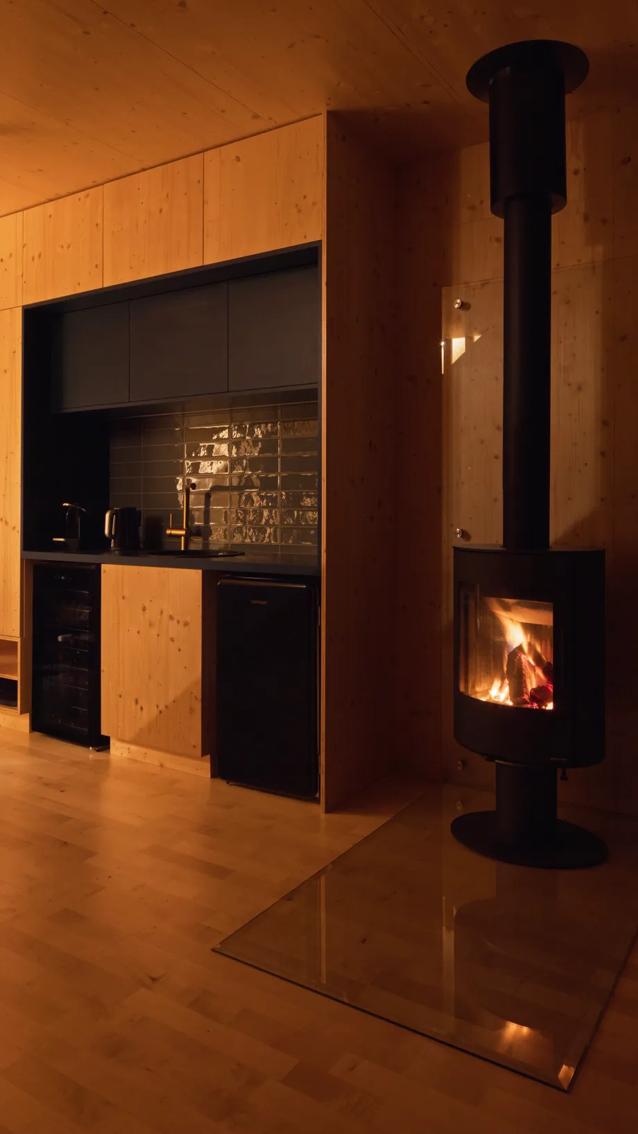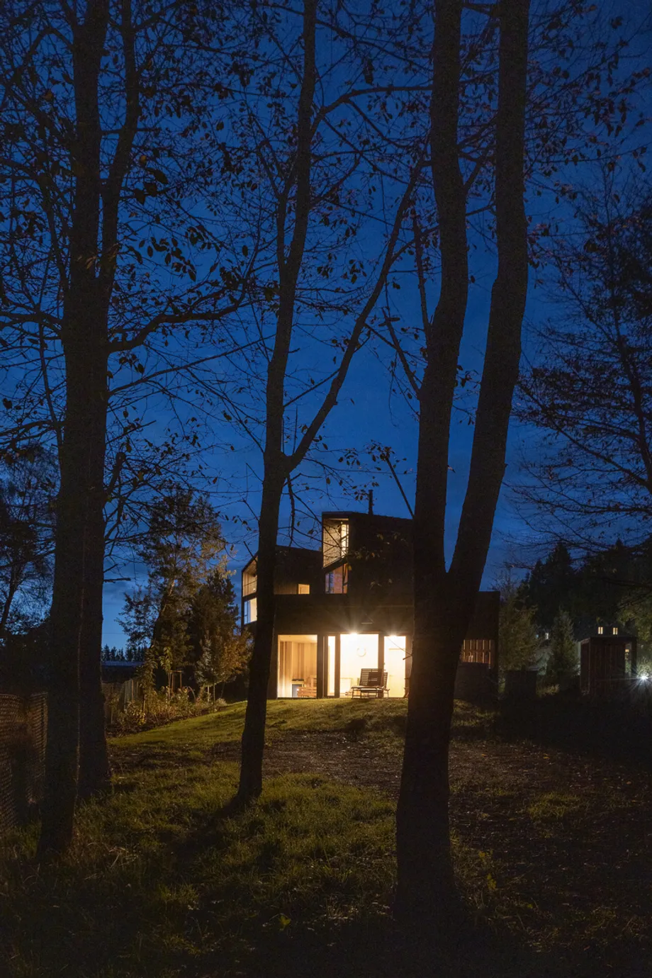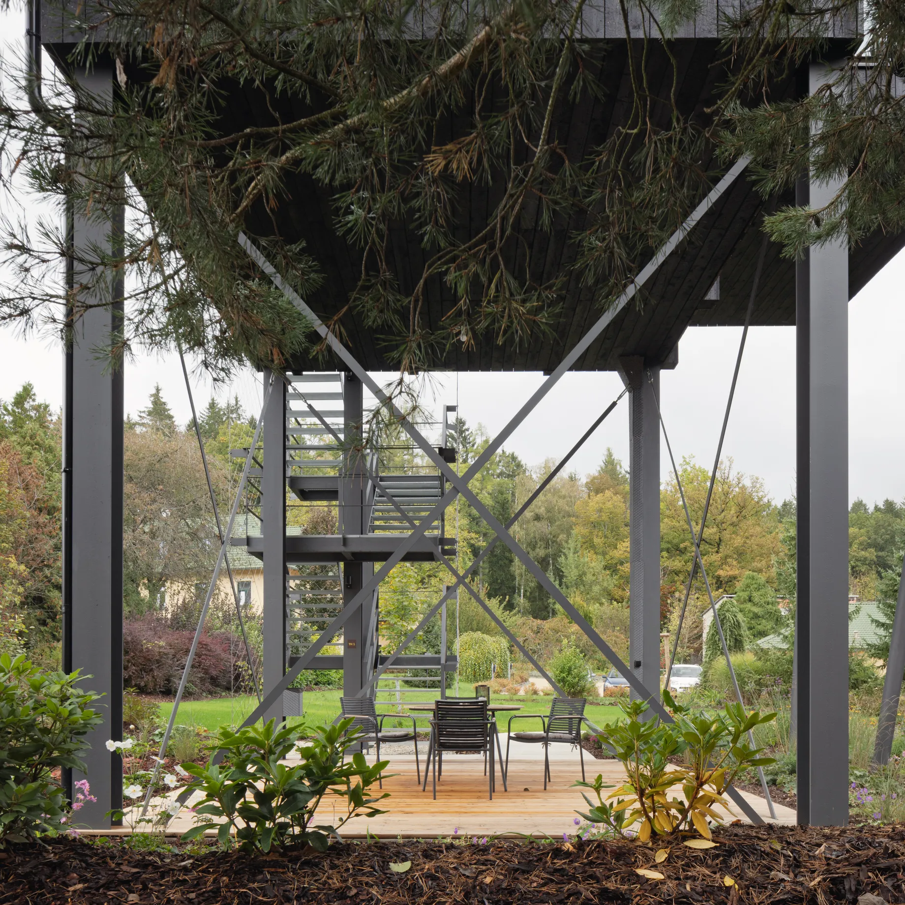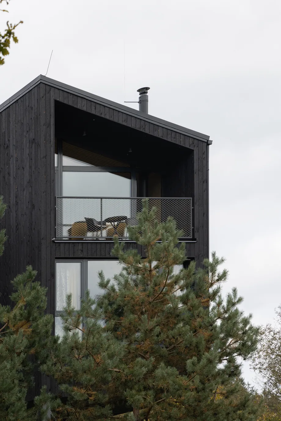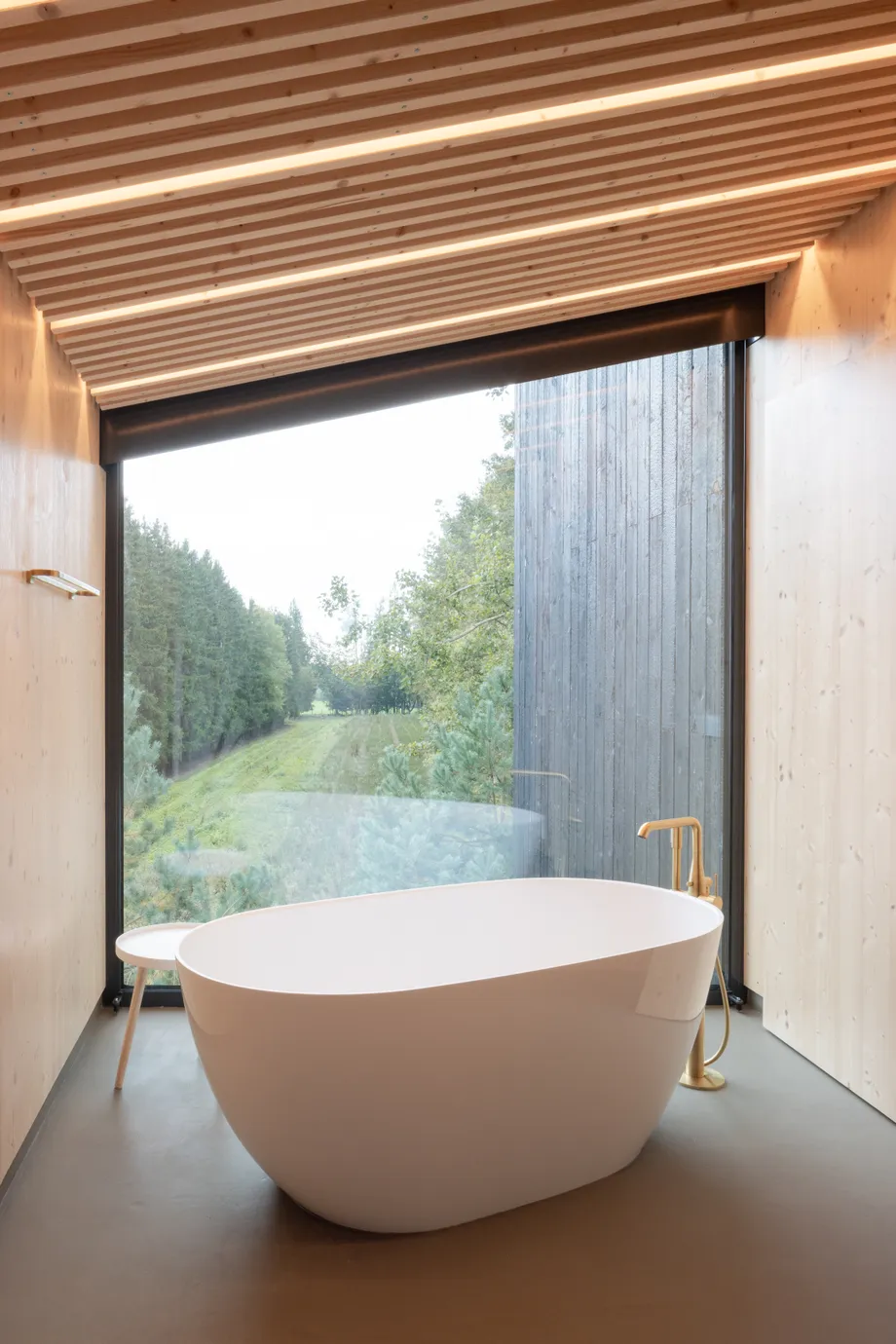 Vnitřní a vnější prostory jsou navrženy tak, aby vytvářely jednotný prostor, v němž se stírá rozdíl mezi exteriérem a interiérem. Fasáda z opalovaného dřeva, se kontextuálně zapojuje do krajinného rázu a zajišťuje dlouhodobou odolnost. Krajinné řešení parteru prohlubuje propojení s vegetací, čímž vytváří autentický zážitek v souladu s okolním prostředím.