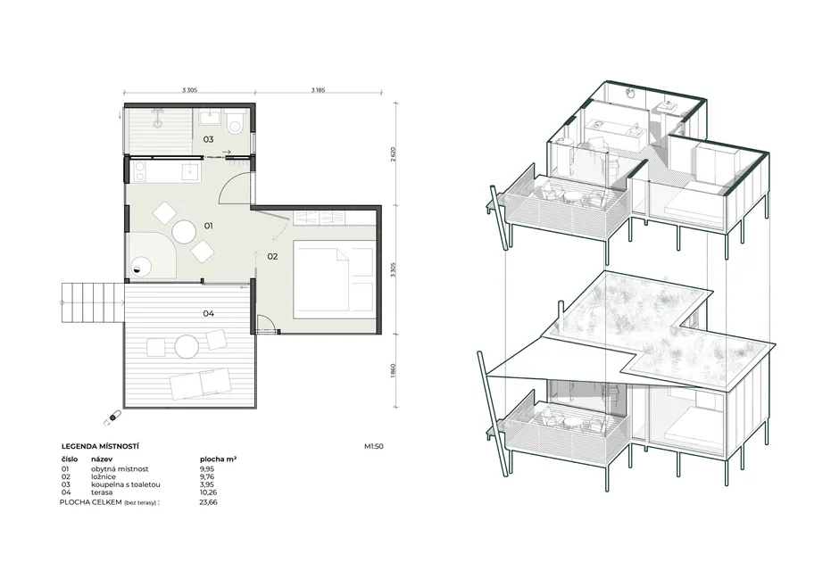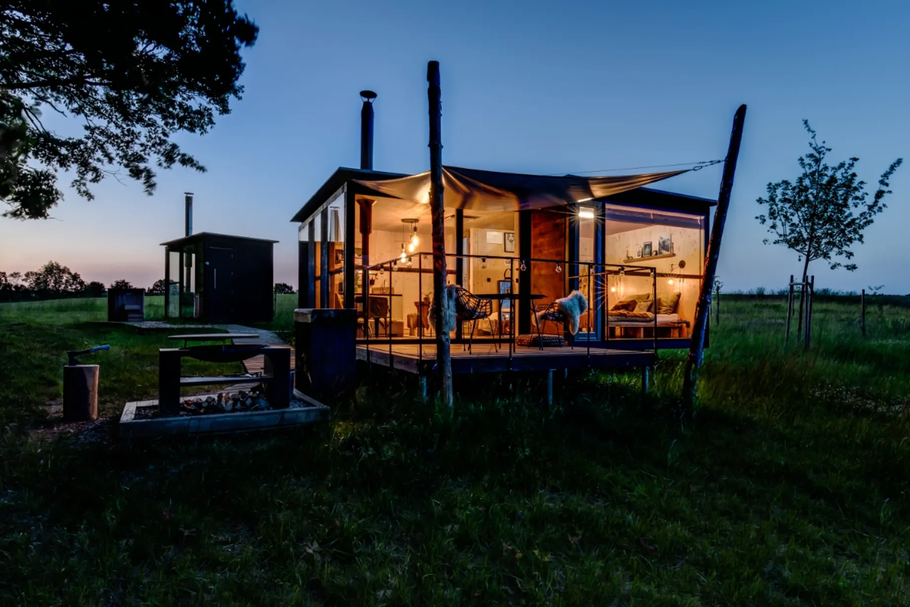 Ve spolupráci s Bayaya jsme navrhli Glamping TwoFingers v Krabčicích – jedinečné místo v přírodě, které spojuje pohodlí s klidem lesa, rybníků a luk. Nabízí ubytování od maringotek u rybníka a chat na louce až po posedy ukryté v korunách stromů, přičemž každý objekt má svou vlastní identitu. V roce 2024 získal areál TwoFingers ocenění za nejlepší glamping podle Amazing Places.