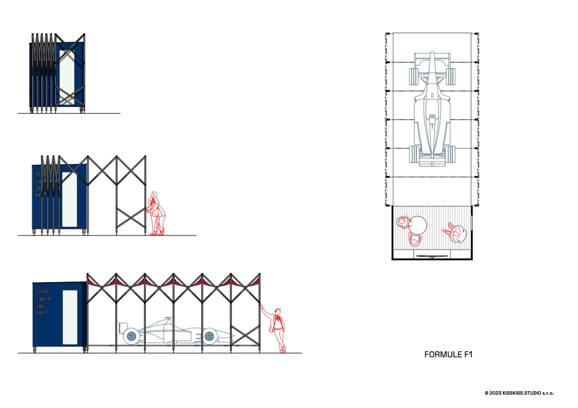 Projekt byl navržen a upraven také pro Red Bull Racing, kde slouží jako mobilní výstavní pavilon Formule 1 během skandinávského turné. Kromě prezentace závodního vozu poskytuje prostor pro natáčení podcastů a rozhovory s jezdci. Red Bull Racing si Tiny Tent vybral pro jeho jedinečný design a snadnou mobilitu.